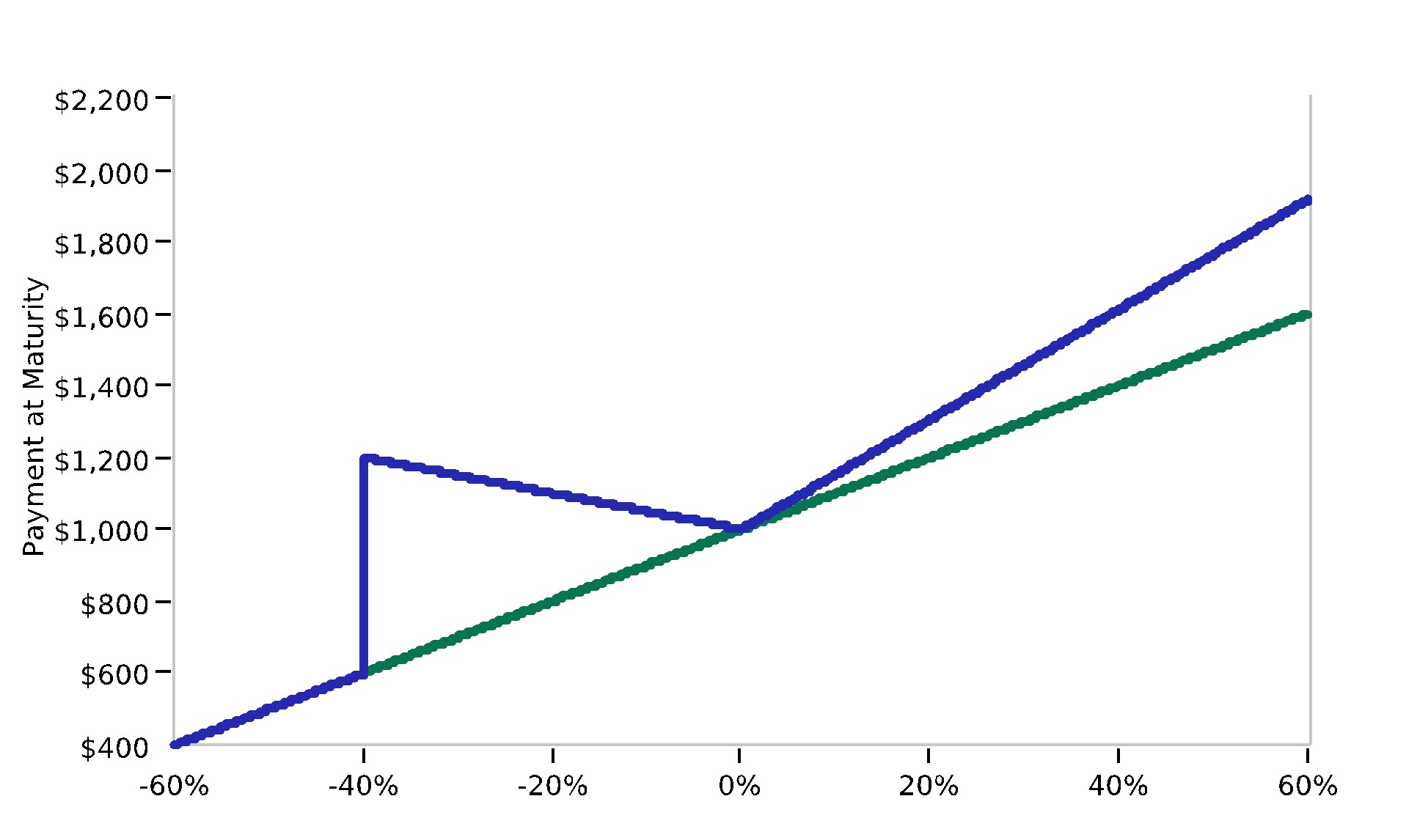 The following table and graph illustrate the hypothetical total return and payment at maturity on the notes linked to a hypothetical Index. The “total return” as used in this pricing supplement is the number, expressed as a percentage, that results from comparing the payment at maturity per $1,000 principal amount note to $1,000. The hypothetical total returns and payments set forth below assume the following: