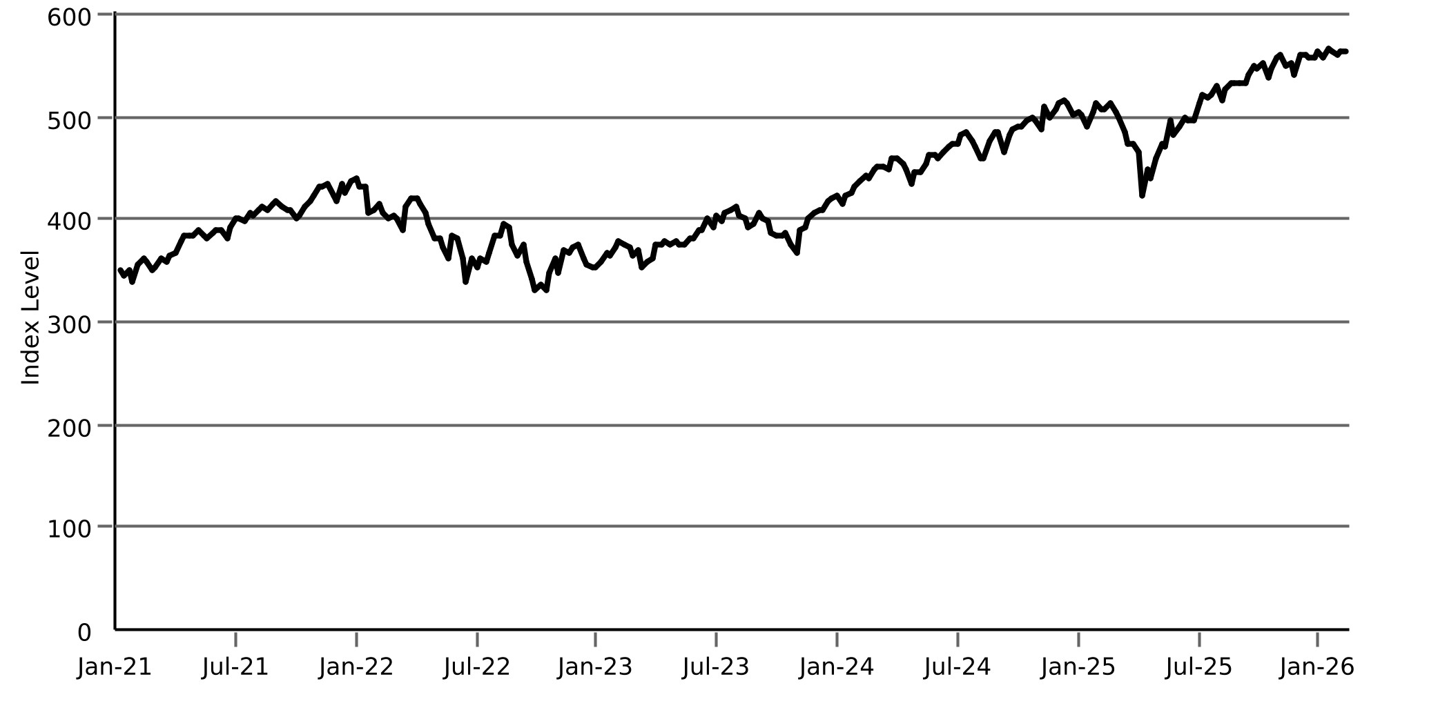 The following graph sets forth the historical performance of the Index based on the weekly historical closing levels of the Index from January 8, 2021 through February 6, 2026. The closing level of the Index on February 10, 2026 was 562.90. We obtained the closing levels above and below from the Bloomberg Professional® service (“Bloomberg”), without independent verification.