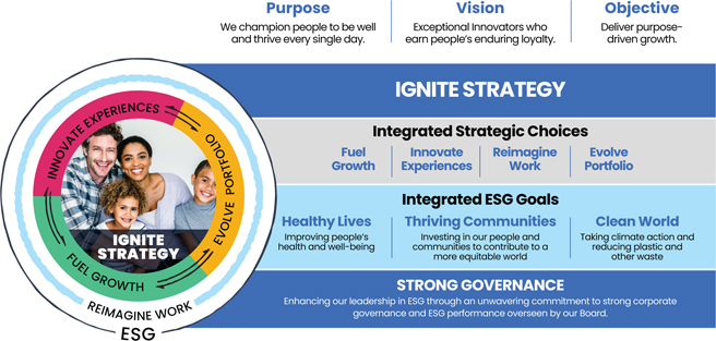 | • | Taking climate action and addressing plastic and other waste: We are executing on our climate action plan to advance our long-term environmental sustainability goals. In addition to maintaining 100% renewable electricity in our U.S. and Canada operations, we also achieved 88% of our goal to have 100% recyclable, reusable or compostable packaging by 2025. We are also engaging our high-impact and strategic suppliers to understand where we can align on climate action to realize our ambitious scope 3 science-based targets. |