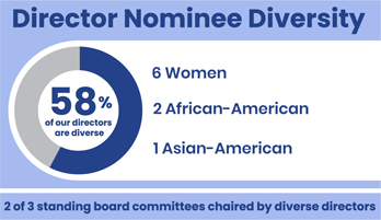 Our Board possesses a diverse set of relevant skills, experiences and perspectives to provide robust risk and strategic oversight of the Company. We are also committed to building a diverse and inclusive workplace as we fundamentally believe it leads to better outcomes for our business. This commitment starts at the top—we are proud that our Board is 50% women and 25% people of color.