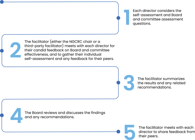 As part of our efforts to continuously strengthen the overall effectiveness of the Board and its committees, we conduct annual board and individual director evaluations. The Board enhanced its process in fiscal year 2023 by engaging a third-party corporate governance expert to conduct its annual assessment, in line with leading governance practice.