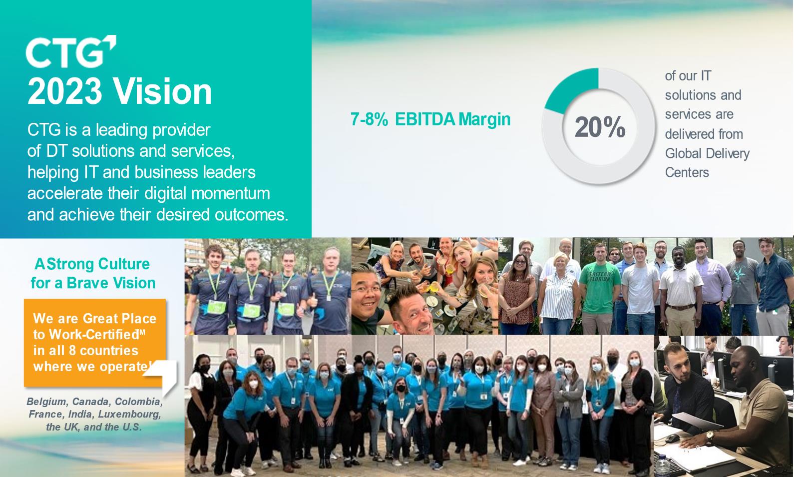 Our transformation effort has had substantial results: CTG’s business is more focused with a larger mix of its revenue from solutions which yields higher margins. We expect to continue to drive margin improvement throughout 2022 and make further progress toward our goal of building a leading digital solutions and services enterprise for North America and Europe.