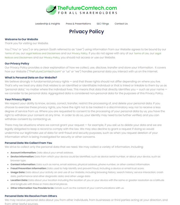 We are excited to announce that we have created a new website at TheFutureComtech.com, where you can send us your thoughts. Soon, you’ll be able to stay-up to-date on what we have to say, and we will also make it easy to access important information including our SEC filings.