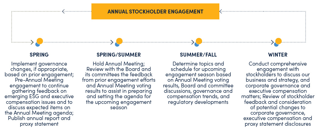 To be eligible for inclusion in our Proxy Statement for the 2024 Annual Meeting of Stockholders proposals must meet the requirements of Rule 14a-8 of the Exchange Act and, must be received by us at one of our Principal Executive Offices by December 7, 2023, unless the date of the 2024 Annual Meeting of Stockholders is more than 30 days before or after May 17, 2024, in which case the proposal must be received within a reasonable time before we begin to print and send our proxy materials.
