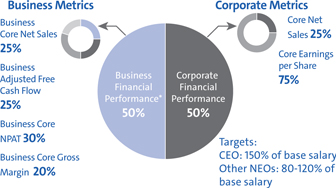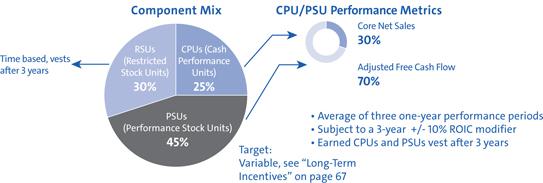 | (1) | Items excluded from Adjusted Free Cash Flow for compensatory purposes. The Compensation and Talent Management Committee approved adjustments to free cash flow for compensation purposes when it approved the measures each year that are designed to prevent favorable or unfavorable impacts to the results due to unbudgeted items which are within the scope of normal operations but outside the scope of compensation plan. |