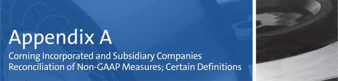 | Corning Incorporated and Subsidiary Companies Reconciliation of Non-GAAP Measures; Certain Definitions |