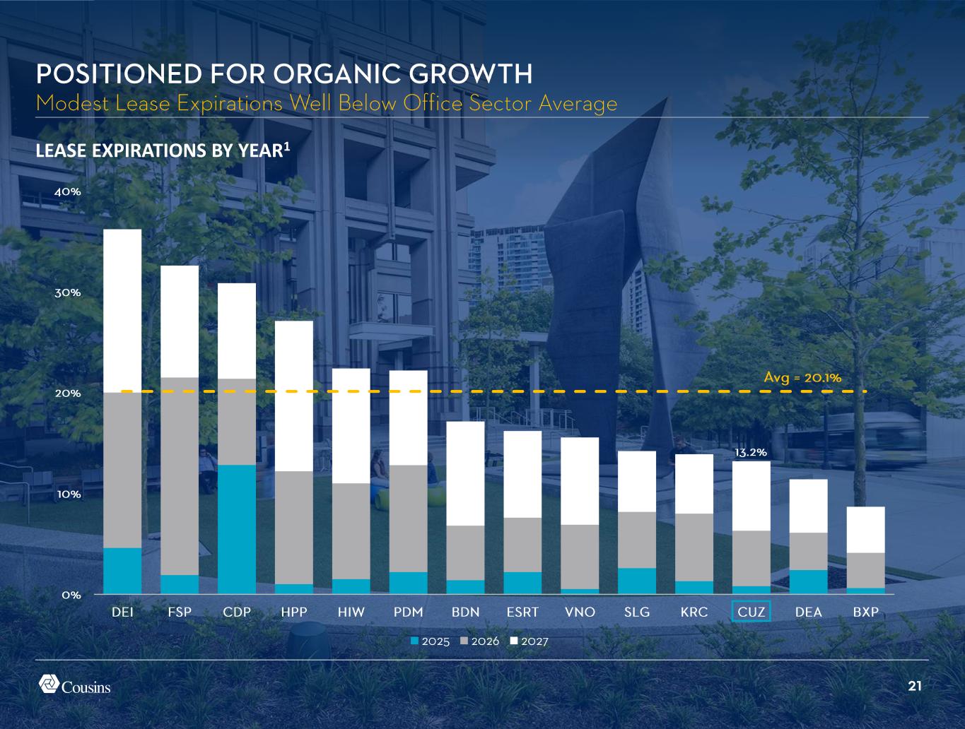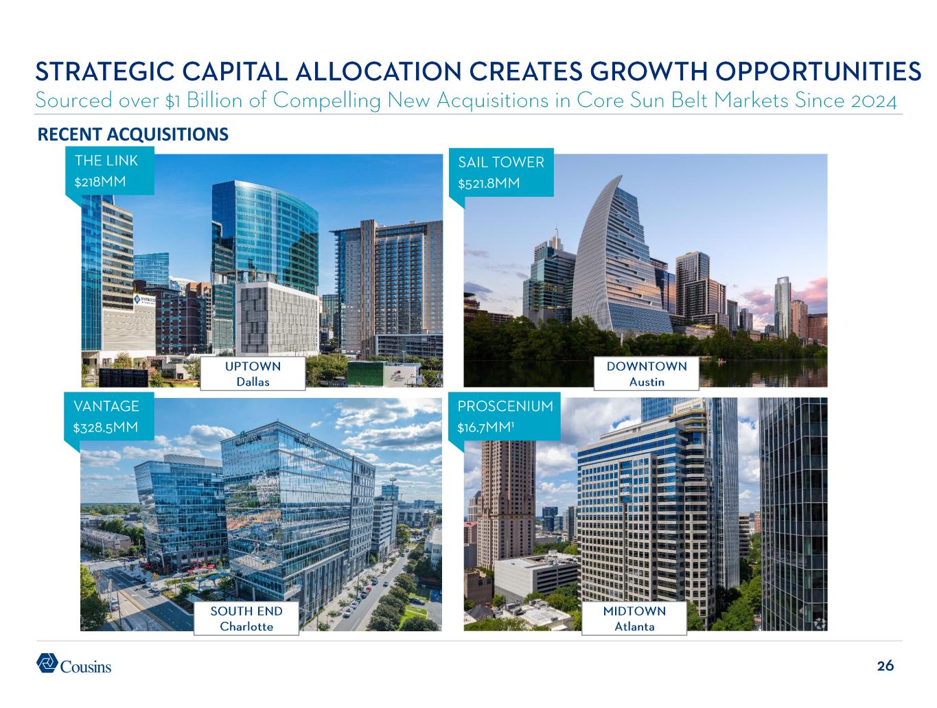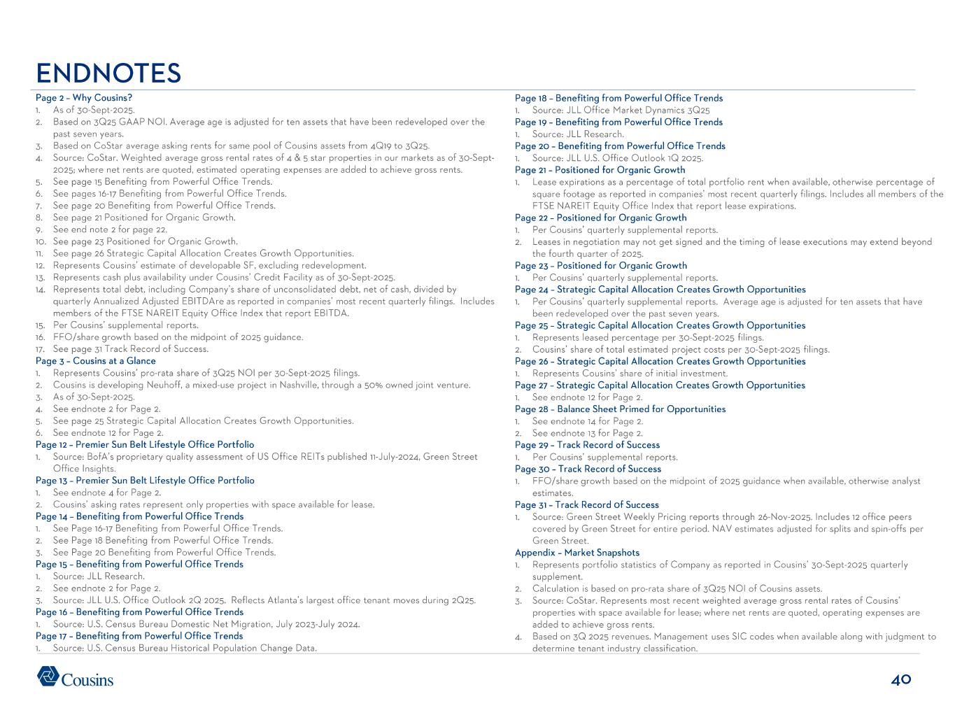 3344 Peachtree Road NE Suite 1800 Atlanta, GA 30326 Executive Vice President and Chief Financial Officer gadzema@cousins.com 404.407.1116 Vice President, Finance and Investor Relations rimbeaux@cousins.com 404.407.1104