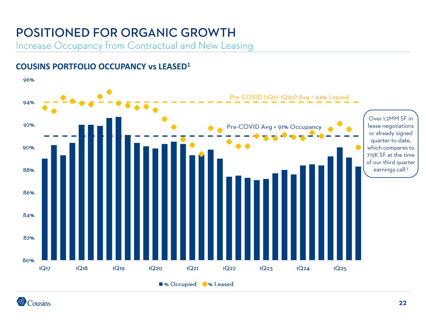 COUSINS PORTFOLIO OCCUPANCY vs LEASED1