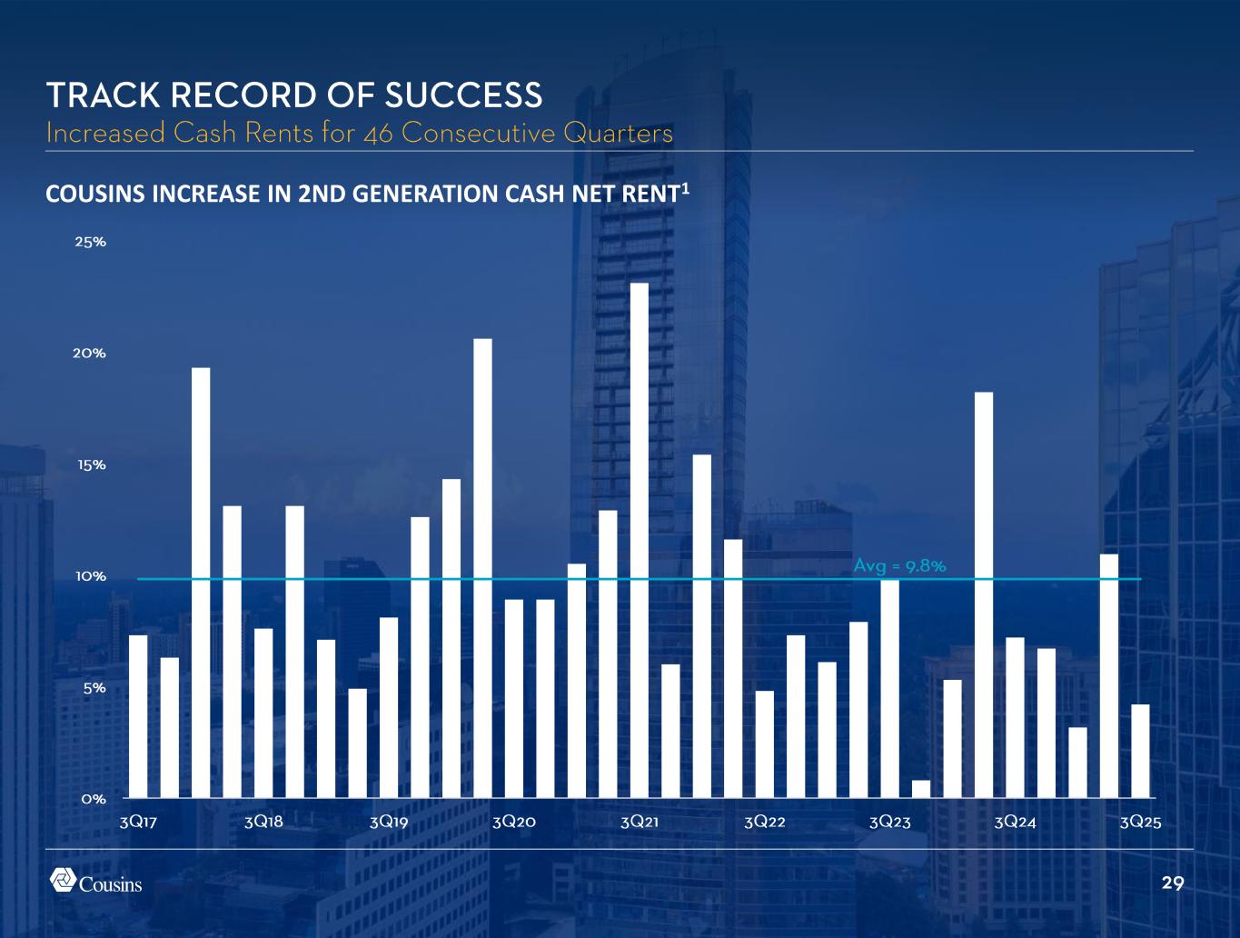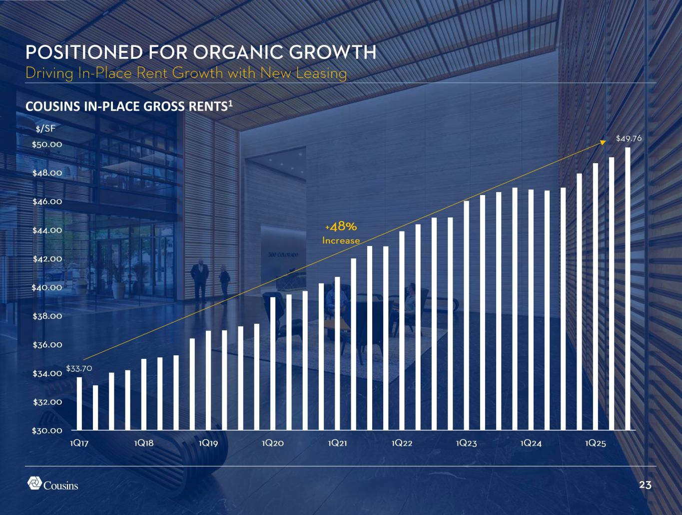 COUSINS INCREASE IN 2ND GENERATION CASH NET RENT1