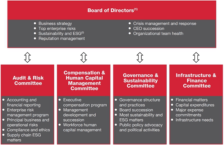 | Committee membership  | The Governance & Sustainability Committee reviews and recommends Committee membership. The Board appoints members of its Committees annually, rotates Committee assignments periodically, and seeks to rotate the Lead Independent Director position and Committee Chair assignments every four to six years. | |
