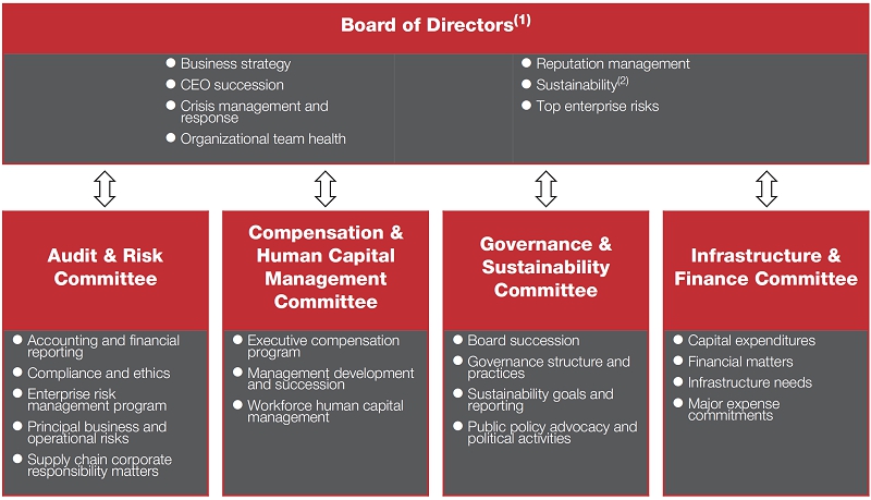 Meanwhile, assessing and cultivating C-level leadership remains a top Board priority. In 2023, we endorsed movement and expansion across the current Leadership Team, with one member being named Chief Operating Officer, another member taking on the new role of Chief Corporate Affairs Officer, and a longstanding officer being promoted to the Leadership Team in the new role of Chief Community Impact and Equity Officer. The Board is also working closely with management to appoint a new Chief Financial Officer and a new Chief Legal and Compliance Officer.