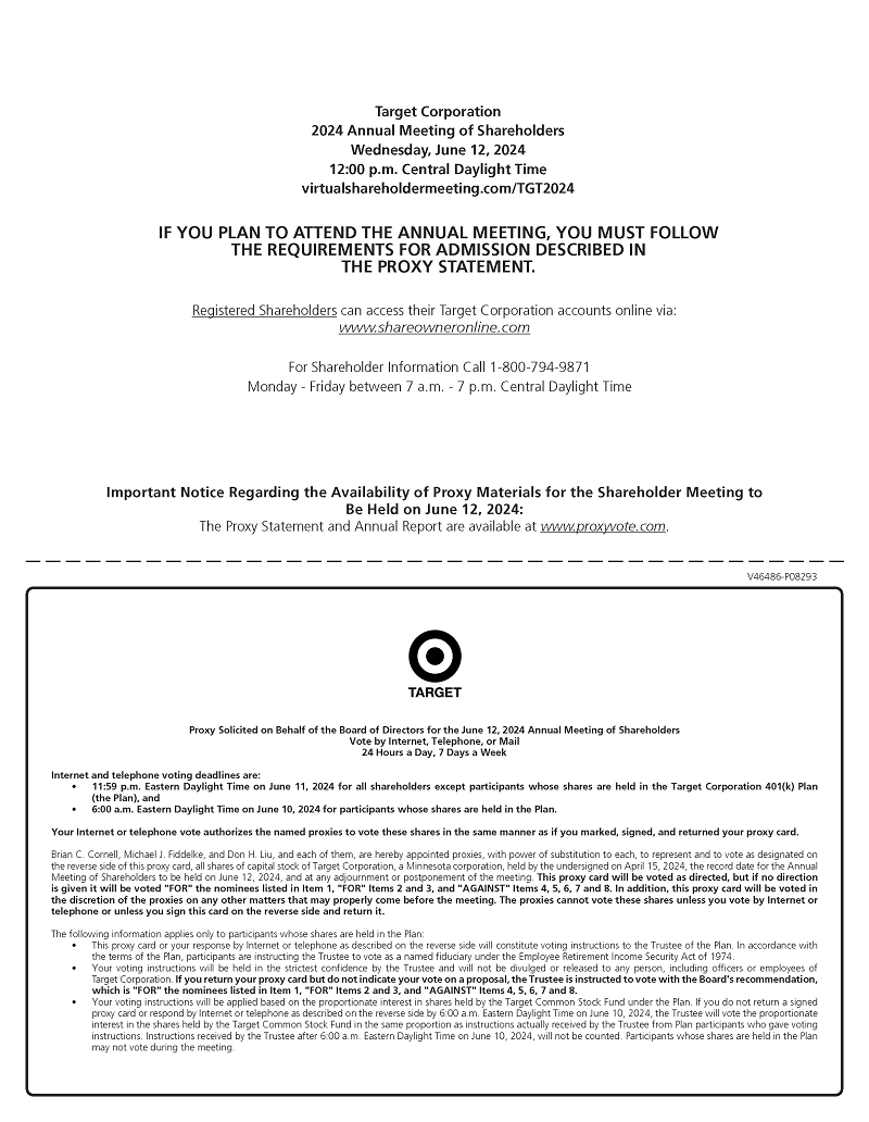 | 2024 Proxy Statement | Target Corporation’s proxy statement for the 2024 Annual Meeting | |