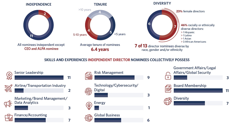We know that these topics remain important to you and we are engaged on them. More information about our governance structure and oversight of safety, performance, strategy, risk, environmental sustainability, diversity, equity and inclusion, employee engagement, and cybersecurity are described in this proxy statement.
