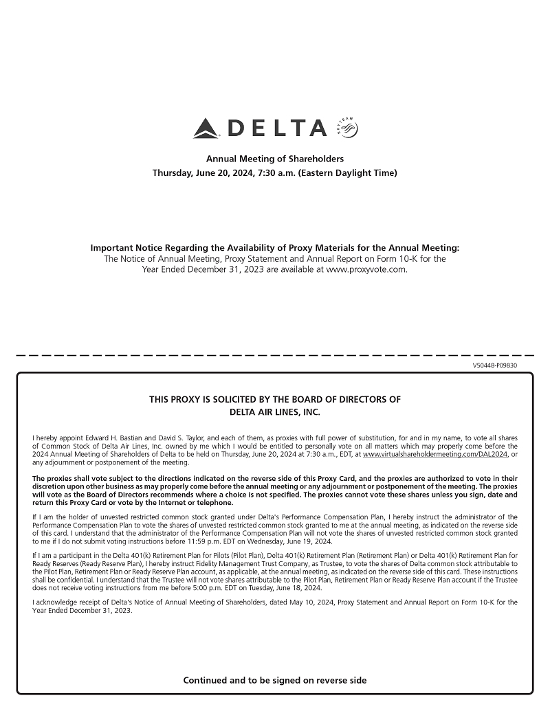 A list of shareholders entitled to vote at the meeting will be available for examination during normal business hours for ten days before the meeting at Delta’s Investor Relations Department, 1030 Delta Boulevard, Atlanta, Georgia 30354.