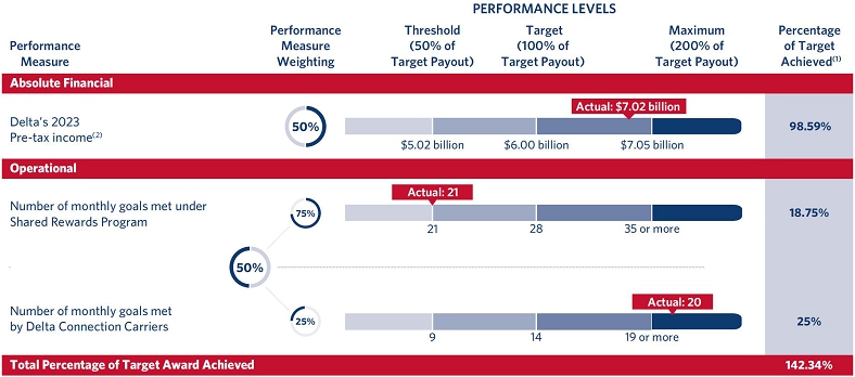 Powered by our greatest resource – our people. Since Delta’s inception nearly a century ago, the company has long leaned into our employees as the core of our success. With 40,000 new hires over the last two years and 28% of our frontline leaders less than one year in role, in 2023 we focused on training, accountability and empowering our people to be their best for each other and our customers. We also shared in our success, with $1.4 billion in 2023 profit sharing payments going directly to our employees on Valentine’s Day this year – double 2022 levels and more than our three largest competitors combined.