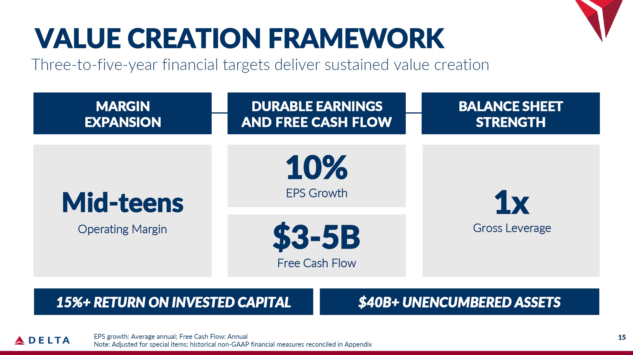 VALUE CREATION FRAMEWORK Three - to - five - year financial targets deliver sustained value creation EPS growth: Average annual; Free Cash Flow: Annual Note: Adjusted for special items; historical non - GAAP financial measures reconciled in Appendix MARGIN DURABLE EARNINGS BALANCE SHEET EXPANSION AND FREE CASH FLOW STRENGTH Mid - teens Operating Margin 1x Gross Leverage 10% EPS Growth $3 - 5B Free Cash Flow 15%+ RETURN ON INVESTED CAPITAL $40B+ UNENCUMBERED ASSETS 15