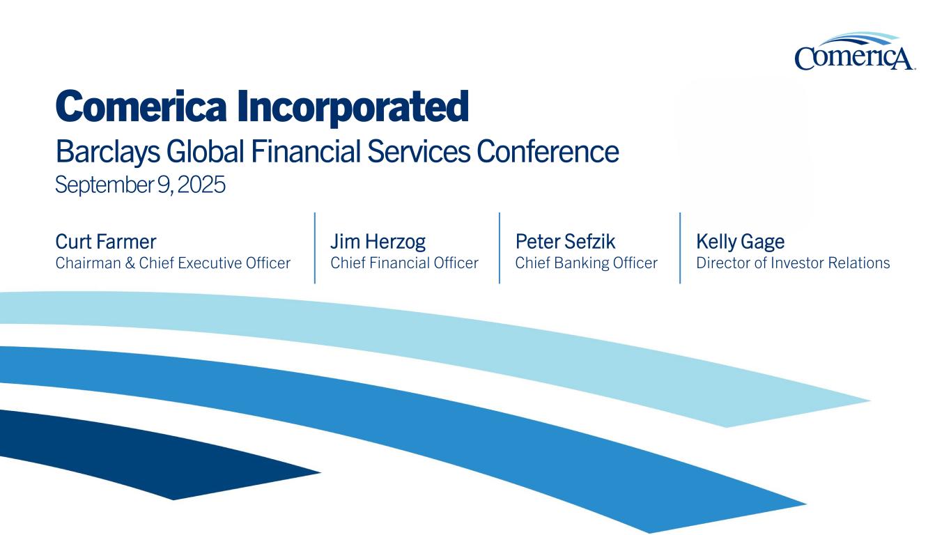 Comerica Incorporated Barclays Global Financial Services Conference September 9, 2025 Jim Herzog Chief Financial Officer Peter Sefzik Chief Banking Officer Kelly Gage Director of Investor Relations Curt Farmer Chairman & Chief Executive Officer