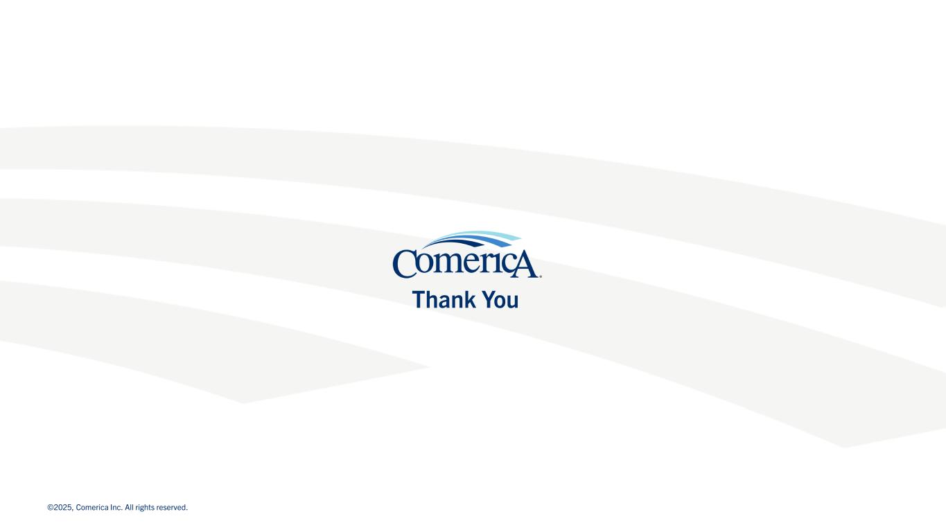 Thank You ©2025, Comerica Inc. All rights reserved.