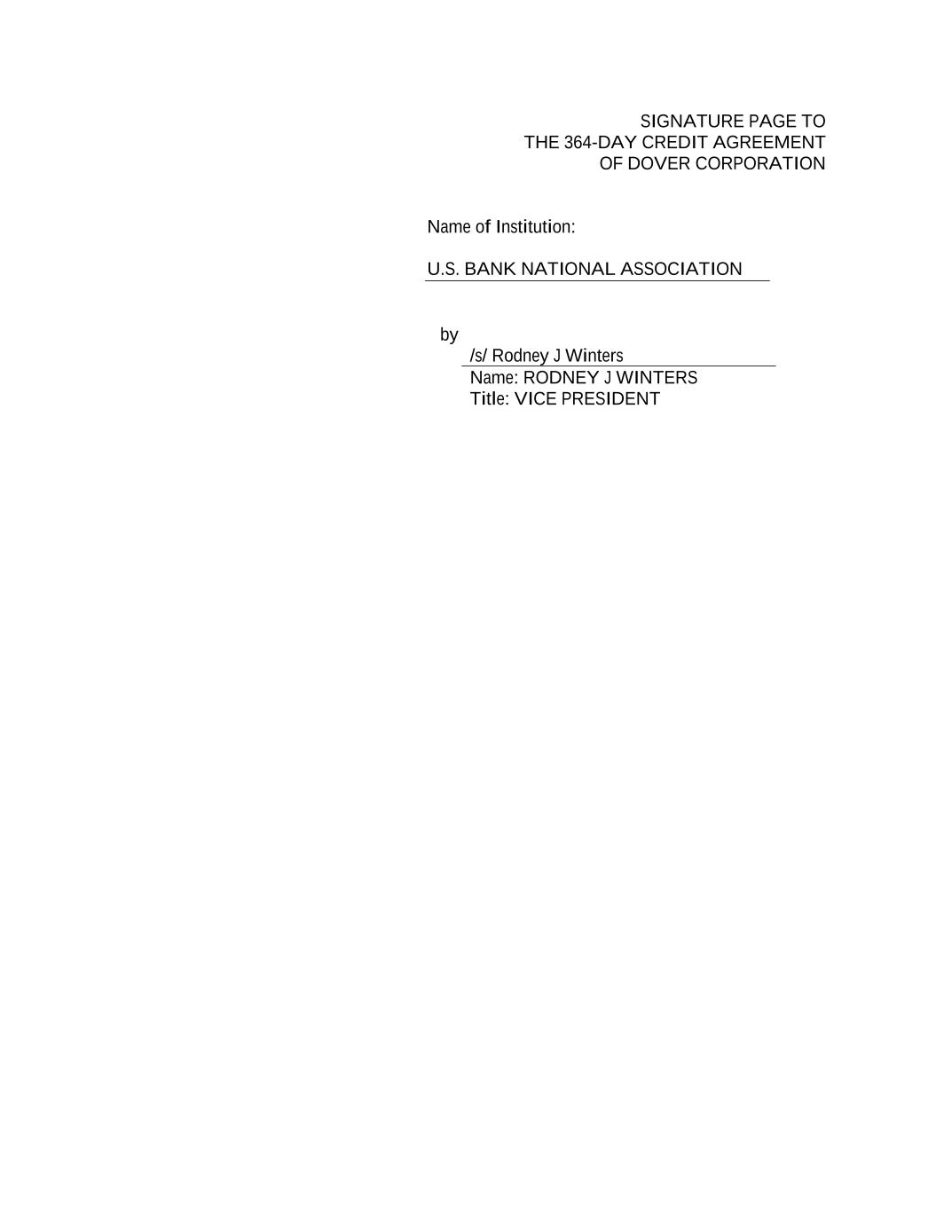 SIGNATURE PAGE TO THE 364-DAY CREDIT AGREEMENT OF DOVER CORPORATION Name of Institution: U.S. BANK NATIONAL ASSOCIATION by /s/ Rodney J Winters Name: RODNEY J WINTERS Title: VICE PRESIDENT