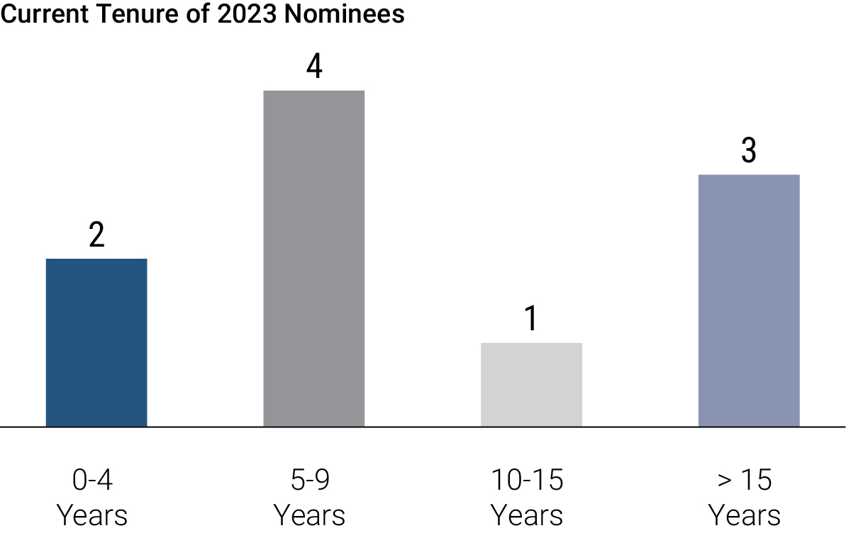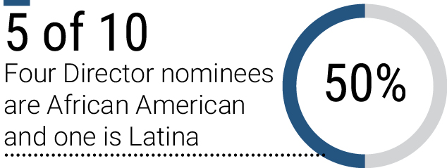 Board Composition and Refreshment. Our current Board composition reflects a multi-year transformation to ensure that the Omnicom Board has the optimal mix of skills, experience, and diversity to align with, and provide effective oversight of, Omnicom’s strategic priorities. Six of our ten nominees this year are female, four are African American, and one is Latina. Additionally, all Board leadership positions are currently held by gender and/or ethnically diverse directors. Our two newest directors, Ms. Pineda and Mr. Gerstein, strengthen our collective Board skillset by contributing to key areas identified through our evaluation process. Their legal and regulatory expertise enhances our Board’s ability to effectively evaluate and manage risk, and their fresh perspectives have already contributed to robust dialogue in the Boardroom.