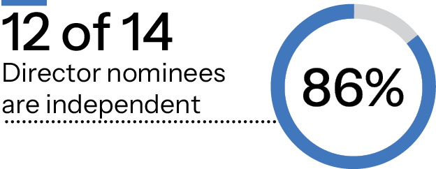 The Board recommends a vote FOR each of the director nominees. ■ We have conducted a comprehensive evaluation of director skill sets to enable each director’s unique qualifications and attributes to collectively support the oversight of Omnicom’s management. ■ Each of our directors is elected annually by a majority of votes cast. ■ 12 of Omnicom’s 14 director nominees are independent, and each of the Audit, Compensation, Governance and Finance Committees is comprised solely of independent directors. |