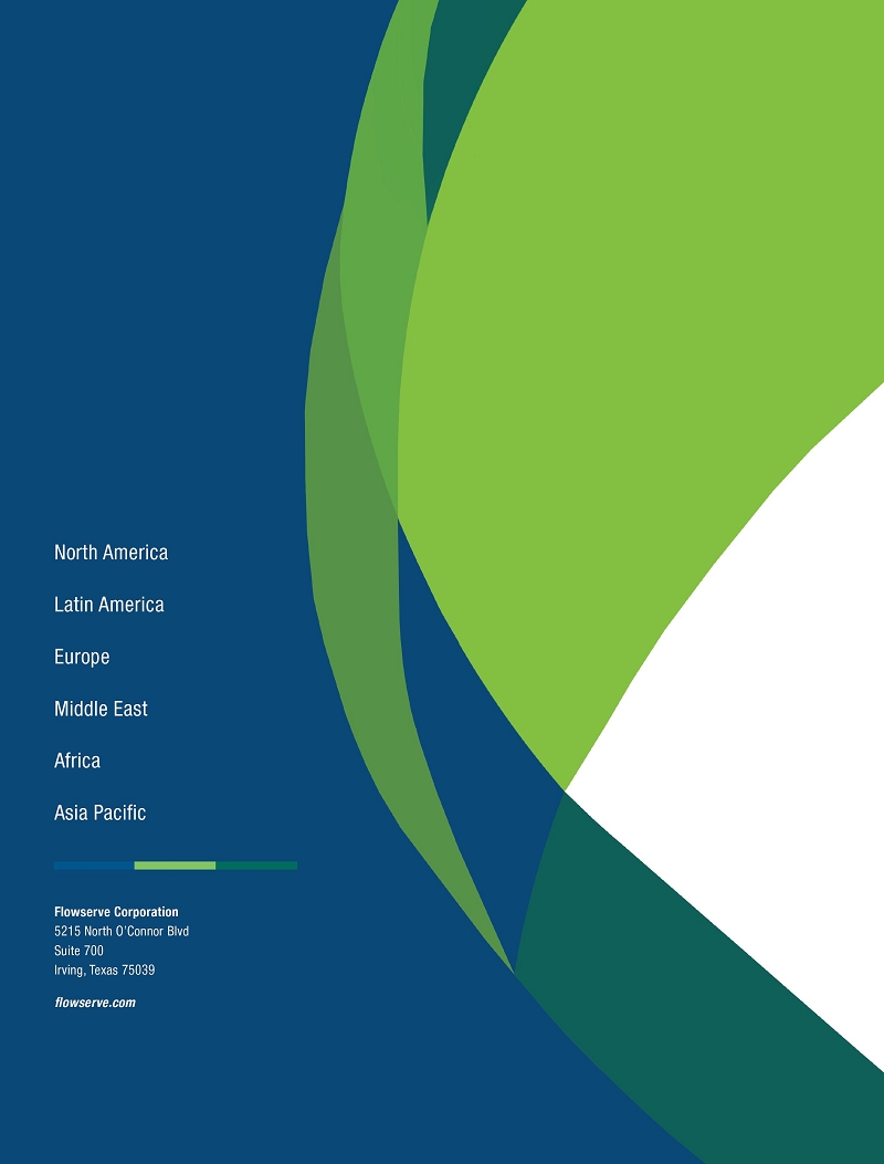 Flowserve’s Board and senior leadership continue to be encouraged by the positive feedback we have received about the clarity of information we provide through our proxy statement. We are continually reviewing ways to enhance the information in our public disclosures and will continue to do so based on your feedback. Your vote is very important to us and to our business. Prior to the meeting, I encourage you to sign and return your proxy card, or use telephone or Internet voting, so that your shares will be represented and voted at the meeting. You can find instructions on how to vote beginning on page 77.