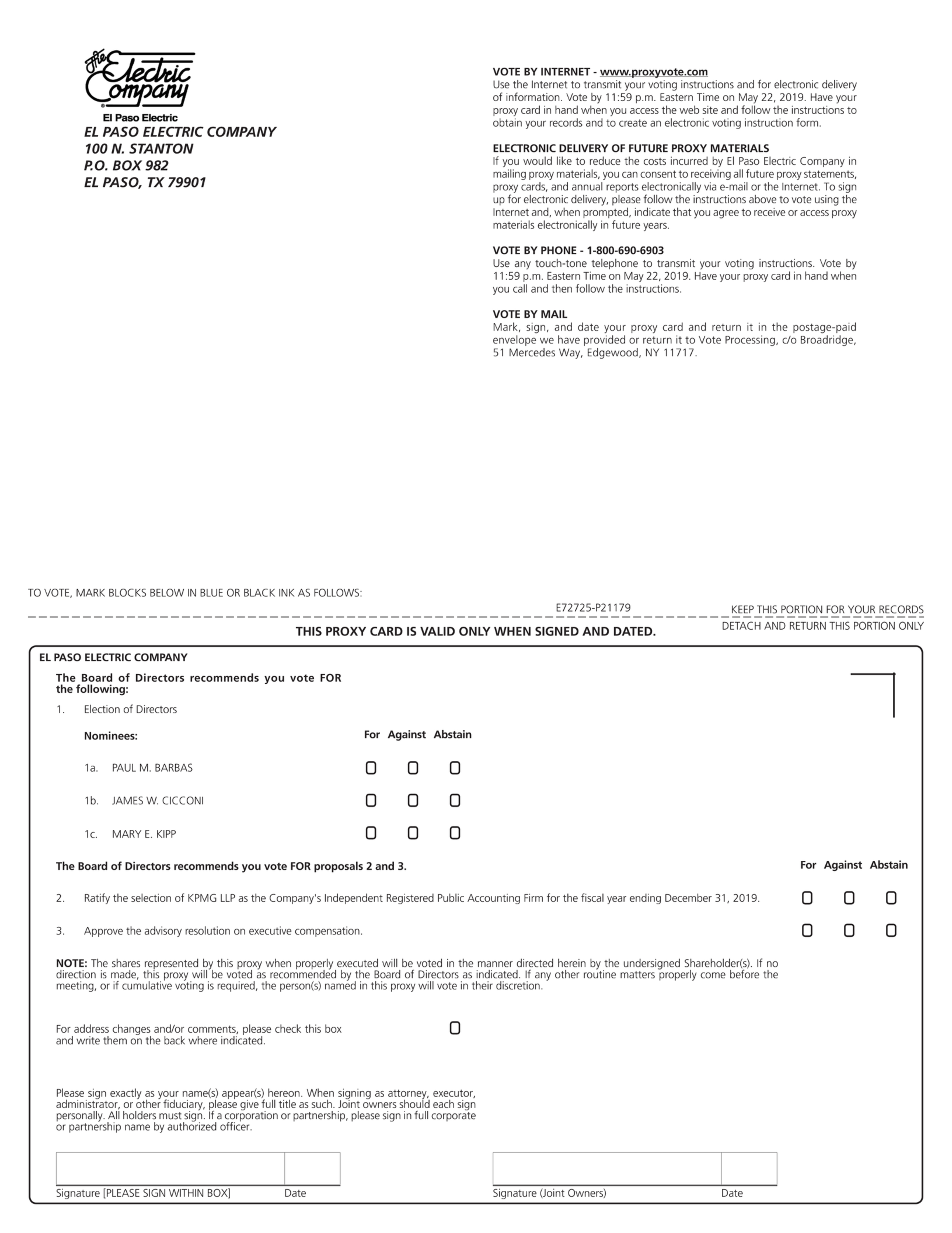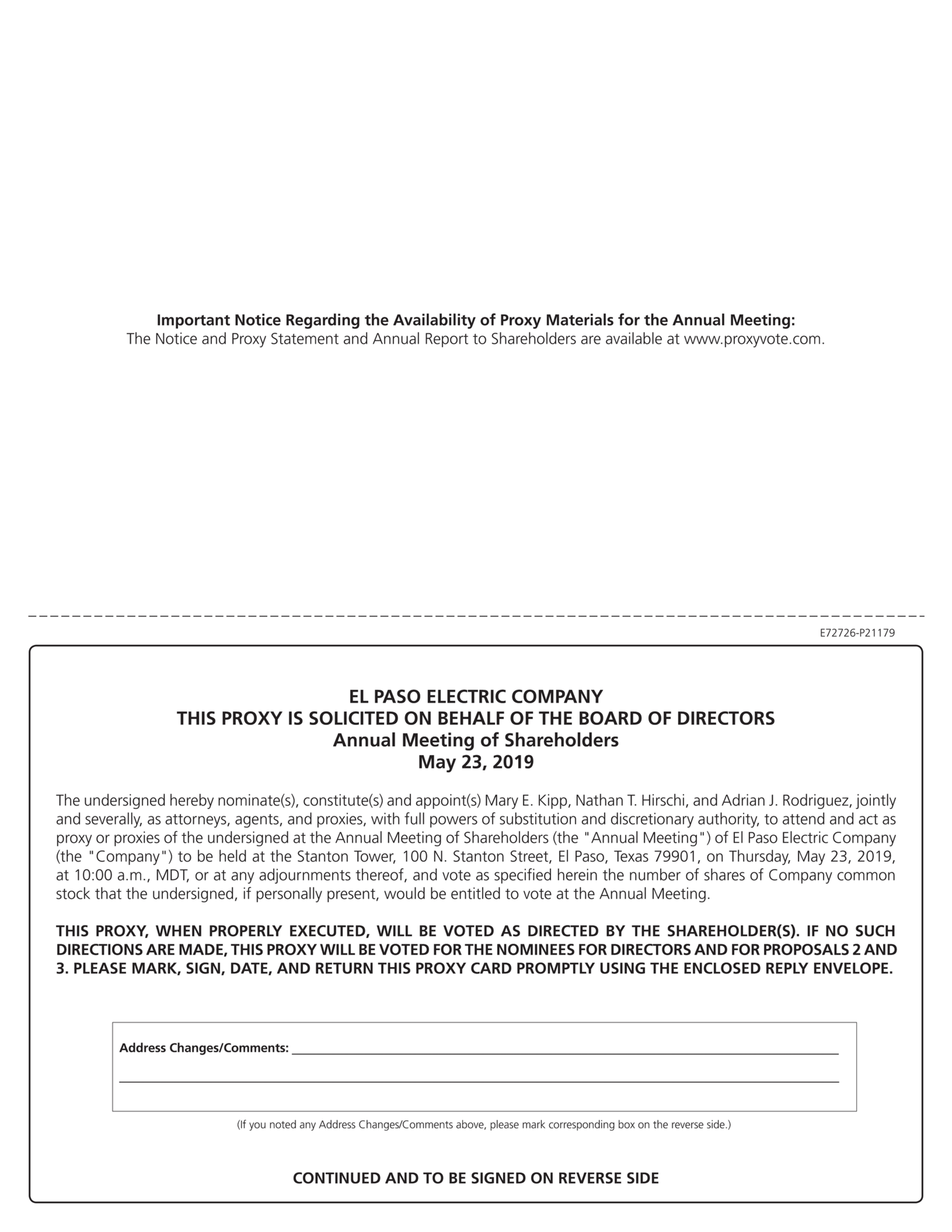 You are cordially invited to attend the 2019 Annual Meeting of Shareholders of El Paso Electric Company. This is your notice for the Annual Meeting.
