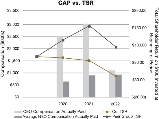 Our total stockholder return (“TSR”) relative to the compensation peer group identified below was lowest over one year, at the 6th percentile over three years and at the 33rd percentile over five years. We believe our December 2021 addition of Arcadia, a commercial and residential building products supplier, led to a transition in our shareholder base during 2022. Multiple large shareholders divested of all or a portion of their DMC shares during the year, and we believe some of these sales were made by energy-focused investors that originally purchased DMC shares based on the oil and gas-related product offerings of DynaEnergetics and NobelClad.