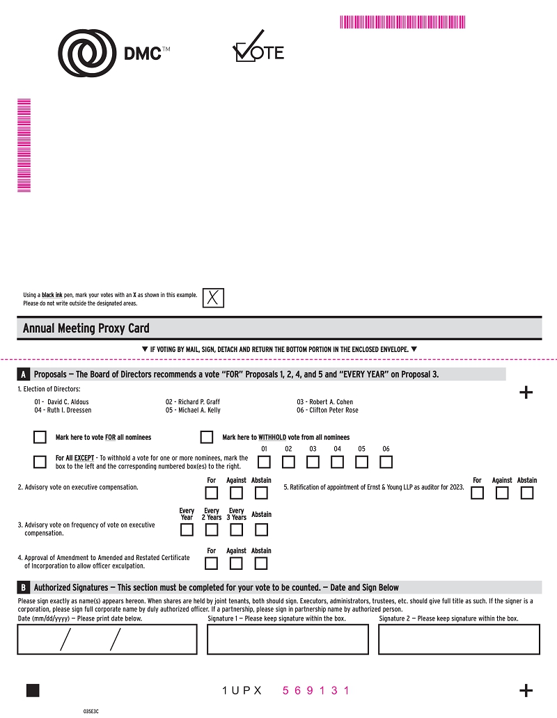 Important Notice Regarding the Availability of Proxy Materials for the Annual Meeting of Stockholders to be Held on May 10, 2023. Similar to last year, we will be using the “Notice and Access” method that allows companies to provide proxy materials to stockholders via the Internet. On or about March 28, 2023, we will mail to our stockholders a Notice of Internet Availability of Proxy Materials which contains specific instructions on how to access Annual Meeting materials via the Internet, as well as instructions on how to request paper copies. We believe this process should provide a convenient way to access your proxy materials and vote. The Proxy Statement and our annual report on Form 10-K for the fiscal year ended December 31, 2022 are available at www.investorvote.com/boom.