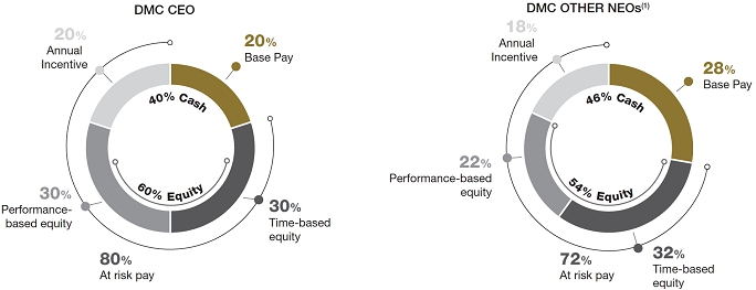 • Our Chief Legal Officer received an increase in her target award opportunity to more closely reflect market compensation. No other changes were made for continuing NEOs. • Mr. Kuta’s and Mr. Aldous’s compensation was agreed to as part of the leadership changes and roles as interim co-Chief Executive Officers. Mr. Kuta’s compensation for his role as sole Chief Executive Officer was agreed to as part of his offer letter and based on market compensation. • Mr. Walter’s and Mr. Chilcoff’s compensation was agreed to as part their respective offer letters. • Based on strong revenue and EBITDA performance, our Compensation Committee approved a Company Performance Component achievement metric of 106% for DMC executives, 105% for Arcadia, and 161% for NobelClad. Due to SG&A and EBITDA performance below target metrics, the Company Performance Component was approved at 55% for DynaEnergetics. |