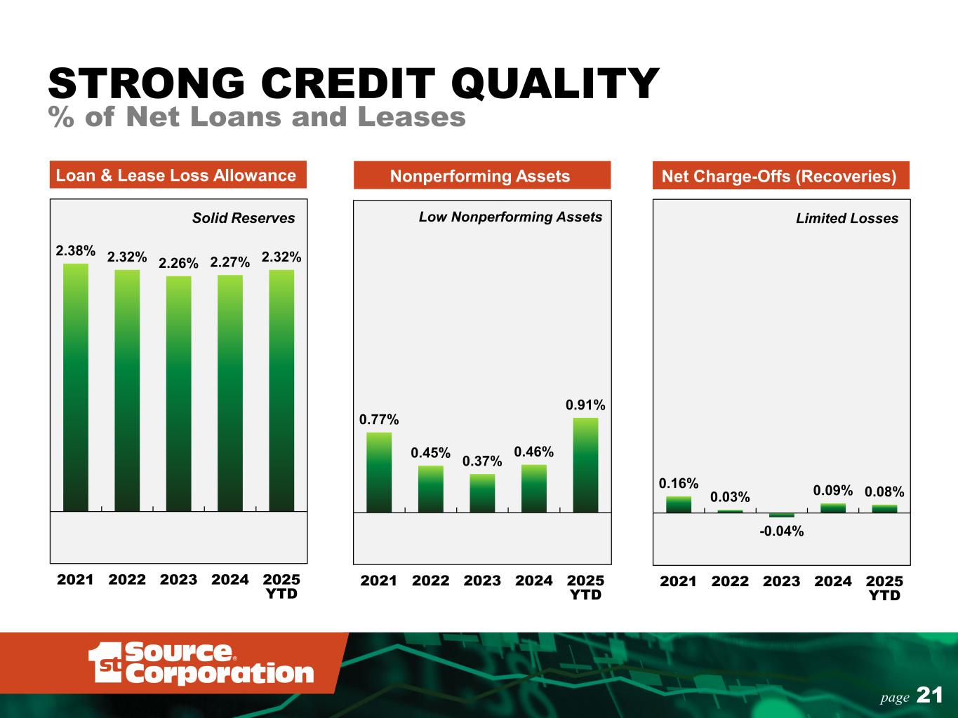 20page Commercial Real Estate 18% Residential Real Estate 10% Consumer 2% Medium and Heavy Duty Truck 4% Auto and Light Truck 14% Construction Equipment 17% Aircraft 16% Commercial 19% DIVERSIFIED LOAN PORTFOLIO 2025 Average Loans by Type