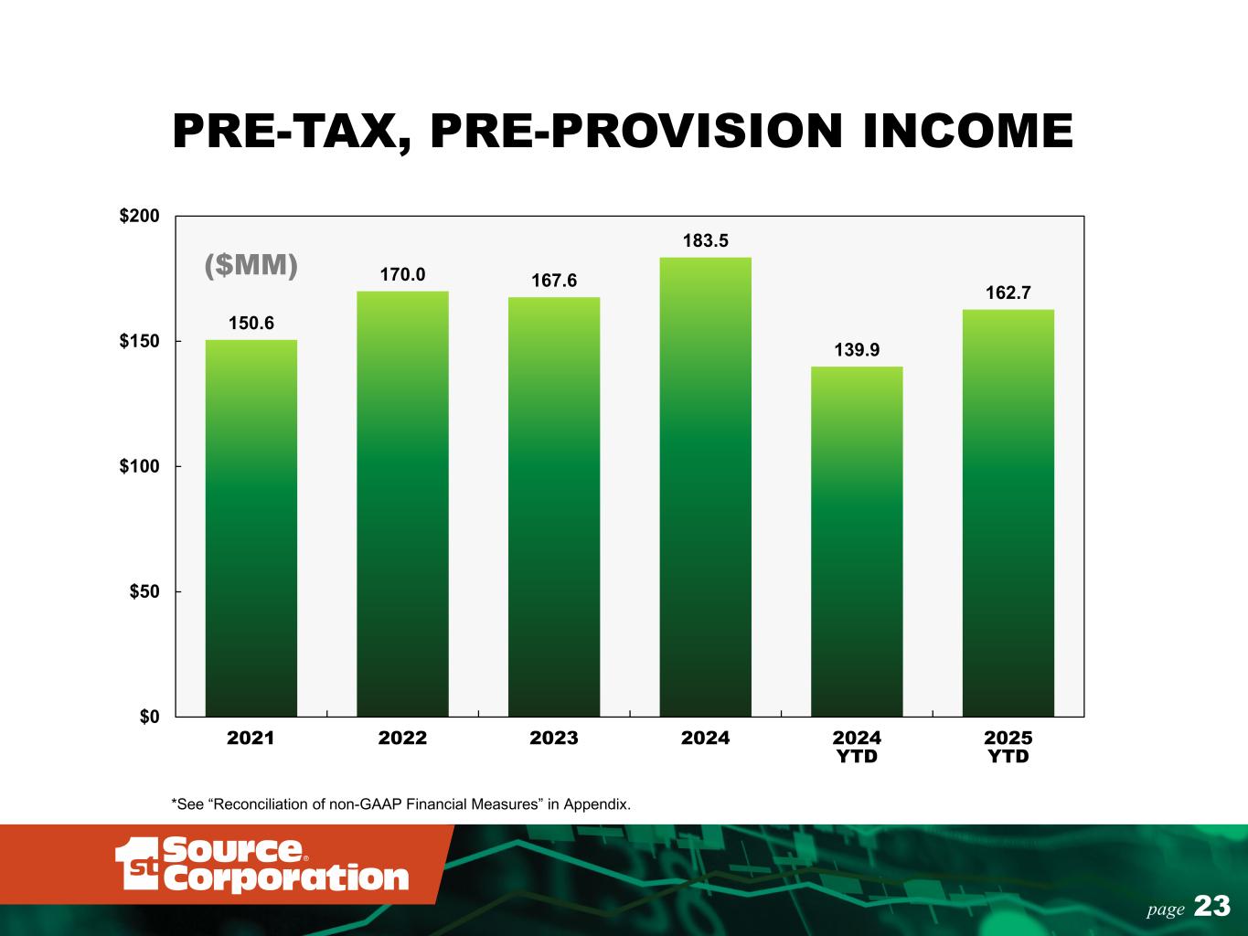 23page 150.6 170.0 167.6 183.5 139.9 162.7 $0 $50 $100 $150 $200 2021 2022 2023 2024 2024 YTD 2025 YTD PRE-TAX, PRE-PROVISION INCOME ($MM) *See “Reconciliation of non-GAAP Financial Measures” in Appendix.