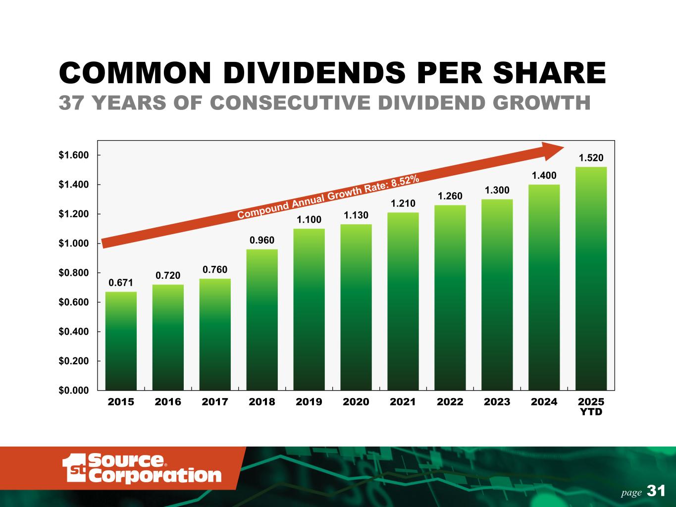 30page $26.30 $29.18 $31.62 $33.64 $31.63 $37.06 $41.89 $47.17 $20.00 $25.00 $30.00 $35.00 $40.00 $45.00 $50.00 2018 2019 2020 2021 2022 2023 2024 2025 YTD TANGIBLE BOOK VALUE PER COMMON SHARE* * See “Reconciliation of non-GAAP Financial Measures” in Appendix.