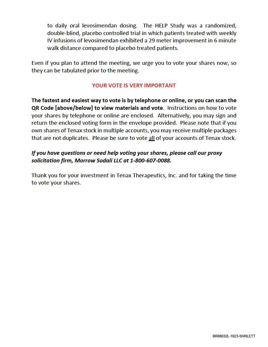 | TENAX THERAPEUTICS, INC. |