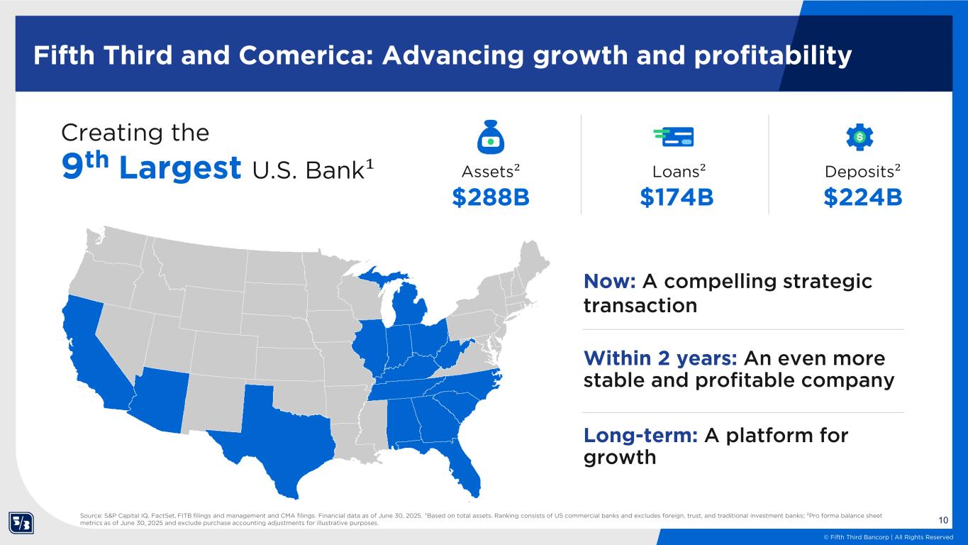 20 © Fifth Third Bancorp | All Rights Reserved Disclaimer (continued) ADDITIONAL INFORMATION ABOUT THE TRANSACTION AND WHERE TO FIND IT Fifth Third filed a registration statement on Form S-4 (File No. 333-291296) with the SEC to register the shares of Fifth Third common stock that will be issued to Comerica stockholders in connection with the proposed Transaction. The registration statement includes a joint proxy statement of Comerica and Fifth Third that also constitutes a prospectus of Fifth Third. The registration statement became effective on November 25, 2025. Fifth Third filed a prospectus on November 25, 2025, and Comerica filed a definitive proxy statement on November 25, 2025. Comerica and Fifth Third each commenced mailing of the definitive joint proxy statement/prospectus to their respective shareholders on or about November 25, 2025. INVESTORS AND SECURITY HOLDERS ARE URGED TO READ THE REGISTRATION STATEMENT ON FORM S-4 AND THE DEFINITIVE JOINT PROXY STATEMENT/PROSPECTUS, AS WELL AS ANY OTHER RELEVANT DOCUMENTS FILED WITH THE SEC IN CONNECTION WITH THE TRANSACTION OR INCORPORATED BY REFERENCE INTO THE REGISTRATION STATEMENT ON FORM S-4 AND THE DEFINITIVE JOINT PROXY STATEMENT/PROSPECTUS, BECAUSE THEY CONTAIN OR WILL CONTAIN IMPORTANT INFORMATION REGARDING COMERICA, FIFTH THIRD, THE TRANSACTION AND RELATED MATTERS. Investors and security holders may obtain free copies of these documents and other documents filed with the SEC by Comerica or Fifth Third through the website maintained by the SEC at https://www.sec.gov or by contacting the investor relations department of Comerica or Fifth Third at: Before making any voting or investment decision, investors and security holders of Comerica and Fifth Third are urged to read carefully the entire registration statement and definitive joint proxy statement/prospectus, including any amendments thereto when they become available, because they contain or will contain important information about the proposed Transaction. Free copies of these documents may be obtained as described above. PARTICIPANTS IN THE SOLICITATION Comerica, Fifth Third and certain of their respective directors and executive officers may be deemed to be participants in the solicitation of proxies from the stockholders of Comerica and shareholders of Fifth Third in connection with the Transaction under the rules of the SEC. Information regarding the directors and executive officers of each of Comerica and Fifth Third is set forth in (i) Comerica’s definitive proxy statement for its 2025 Annual Meeting of Stockholders, including under the headings entitled “Information about Nominees and Other Directors”, “Director Independence”, “Transactions with Related Persons”, “Compensation Committee Interlocks and Insider Participation”, “Compensation of Directors”, “Proposal 3 Submitted for your Vote – Non-Binding, Advisory Proposal Approving Executive Compensation”, “Pay Versus Performance”, “Pay Ratio Disclosure” and “Security Ownership of Management”, which was filed with the SEC on March 17, 2025 and is available at https://www.sec.gov/ix?doc=/Archives/edgar/data/0000028412/000002841225000135/cma-20250313.htm, and (ii) Fifth Third’s definitive proxy statement for its 2025 Annual Meeting of Stockholders, including under the headings entitled “Board of Directors Compensation”, “Compensation Discussion and Analysis”, “Human Capital and Compensation Committee Report”, “Compensation of Named Executive Officers”, “CEO Pay Ratio”, “Pay vs Performance”, “Company Proposal No. 2: Advisory Vote on Compensation of Named Executive Officers (Item 3 on Proxy Card)” and “Compensation Committee Interlocks and Insider Participation”, which was filed with the SEC on March 4, 2025 and is available at https://www.sec.gov/ix?doc=/Archives/edgar/data/0000035527/000119312525045653/d901598ddef14a.htm. To the extent holdings of each of Comerica’s or Fifth Third’s securities by its directors or executive officers have changed since the amounts set forth in Comerica’s or Fifth Third’s definitive proxy statement for its 2025 Annual Meeting of Stockholders, such changes have been or will be reflected on Statements of Change in Ownership on Form 4 filed with the SEC, which are available at https://www.sec.gov/edgar/browse/?CIK=35527&owner=exclude, and at https://www.sec.gov/edgar/browse/?CIK=28412&owner=exclude. Other information regarding the participants in the proxy solicitation and a description of their direct and indirect interests, by security holdings or otherwise, are contained in the definitive joint proxy statement/prospectus and other relevant materials to be filed with the SEC when they become available. You may obtain free copies of these documents through the website maintained by the SEC at https://www.sec.gov. NO OFFER OR SOLICITATION This communication does not constitute an offer to sell or the solicitation of an offer to buy any securities or a solicitation of any vote or approval, nor shall there be any sale of securities in any jurisdiction in which such offer, solicitation or sale would be unlawful prior to registration or qualification under the securities laws of any such jurisdiction. No offer of securities shall be made except by means of a prospectus meeting the requirements of Section 10 of the Securities Act of 1933, as amended. Comerica Inc. Comerica Bank Tower 1717 Main Street, MC 6404 Dallas, TX 75201 Attention: Investor Relations InvestorRelations@comerica.com (833) 571-0486 Fifth Third Bancorp 38 Fountain Square Plaza MD 1090FV Cincinnati, OH 45263 Attention: Investor Relations IR@53.com (866) 670-0468