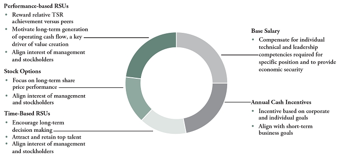 | (11) | Banked PRSUs will vest. A prorated portion of all PRSUs subject to open performance periods will remain outstanding. The proration is determined based on the time actually worked during the applicable performance period. The payouts of these awards are illustrated above based on actual performance for banked units with completed measurement periods and assuming target levels of performance for those units whose measurement period has not yet been completed. In each case, the amounts actually due will be paid in a lump sum after the end of the normal three-year performance cycle, based on actual TSR performance, or operating cash flow performance, calculated in accordance with the terms of the awards. |