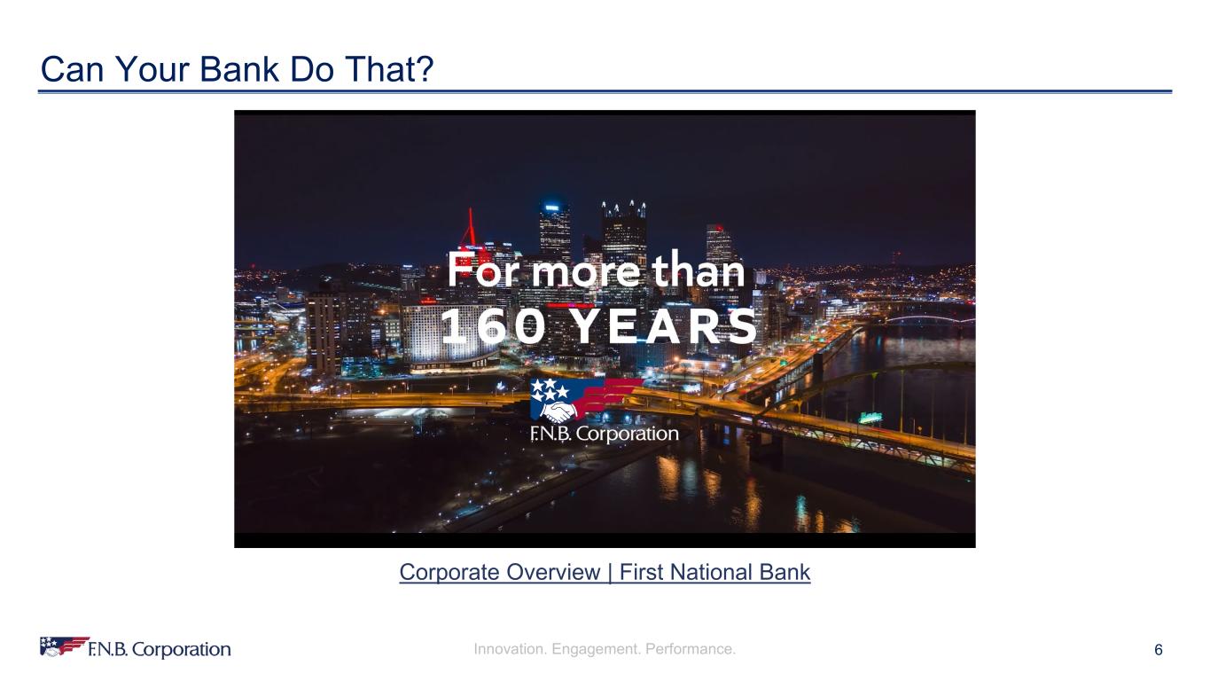 Innovation. Engagement. Performance. 6 Can Your Bank Do That? Corporate Overview | First National Bank