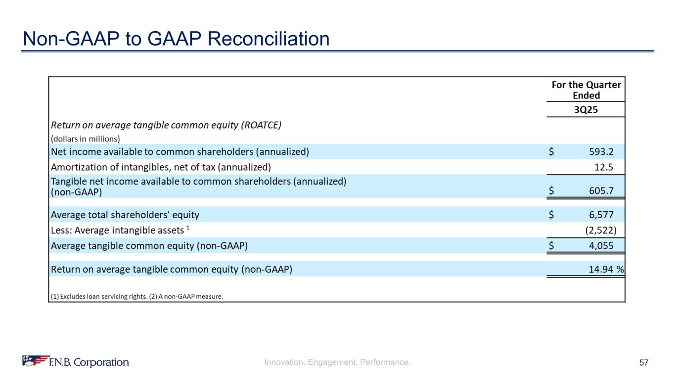 Innovation. Engagement. Performance. Non-GAAP to GAAP Reconciliation 57