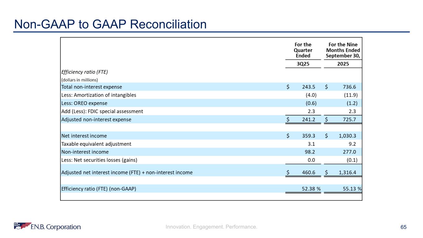 Innovation. Engagement. Performance. Non-GAAP to GAAP Reconciliation 64