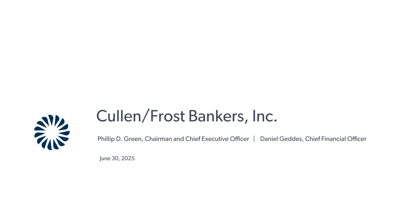 Phillip D. Green, Chairman and Chief Executive Officer | Daniel Geddes, Chief Financial Officer Cullen/Frost Bankers, Inc. June 30, 2025