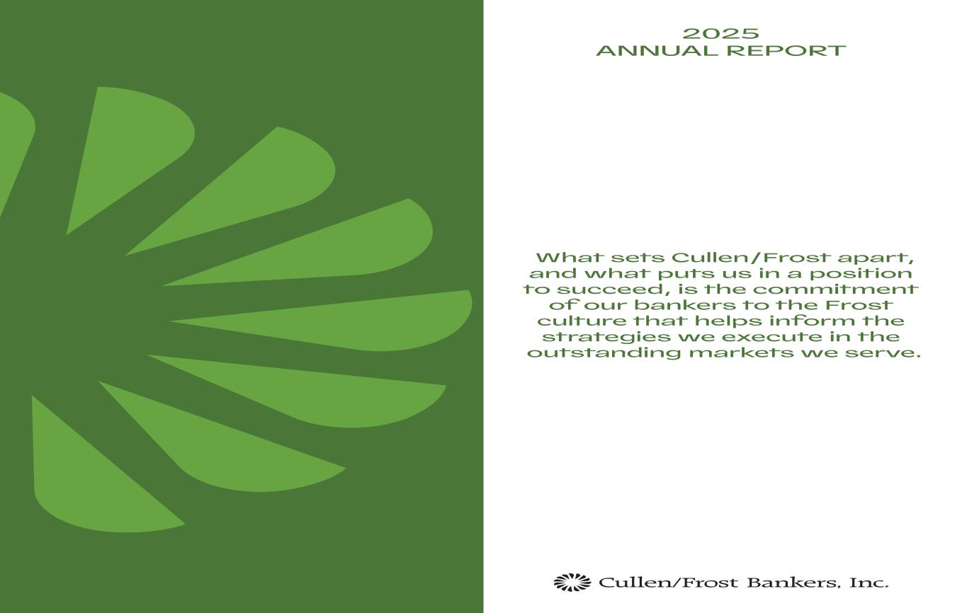 What sets Cullen/Frost apart, and what puts us in a position to succeed, is the commitment of our bankers to the Frost culture that helps inform the strategies we execute in the outstanding markets we serve. C ullen/Frost Bankers, Inc. A nnual R eport 2025 2025 ANNUAL REPORT © 2026 Cullen/Frost Bankers, Inc. All rights reserved.