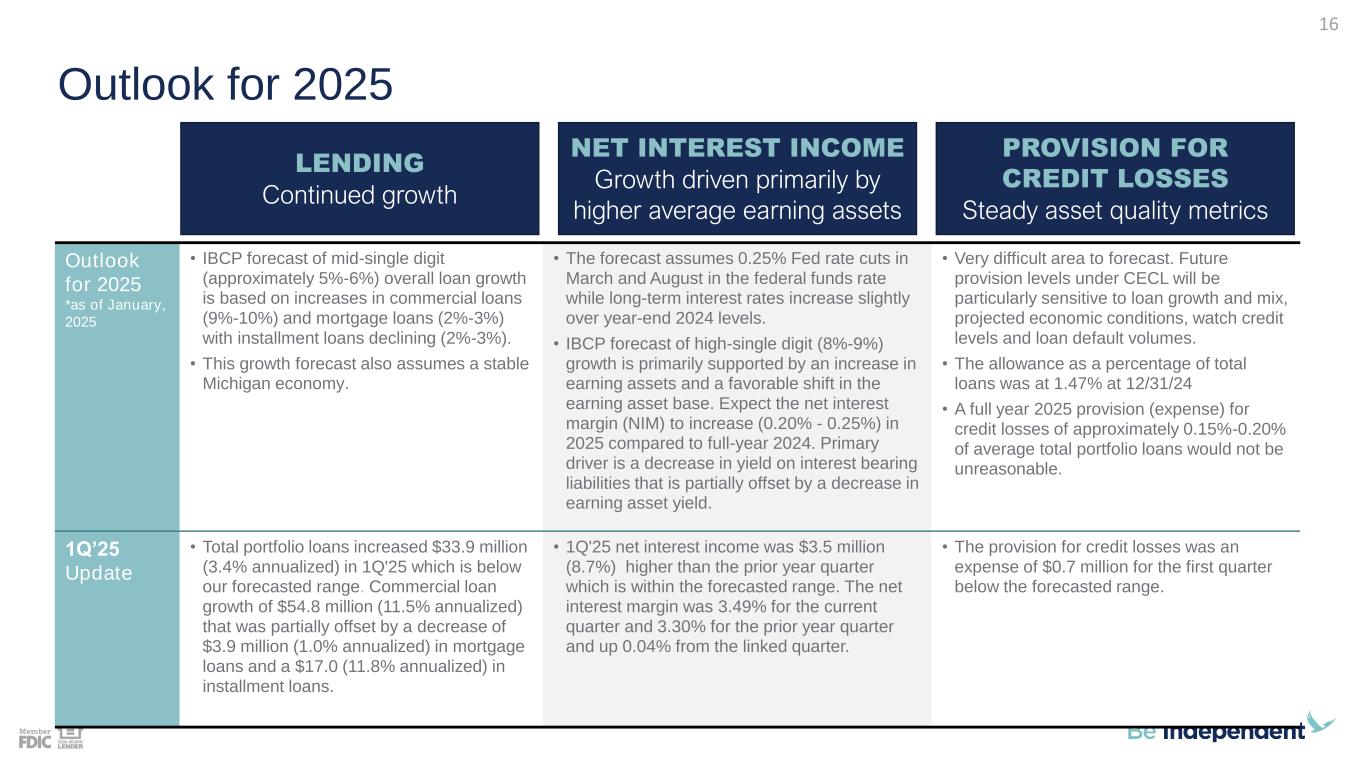 Earnings Call: First Quarter 2025 April 24, 2025 (NASDAQ: IBCP)