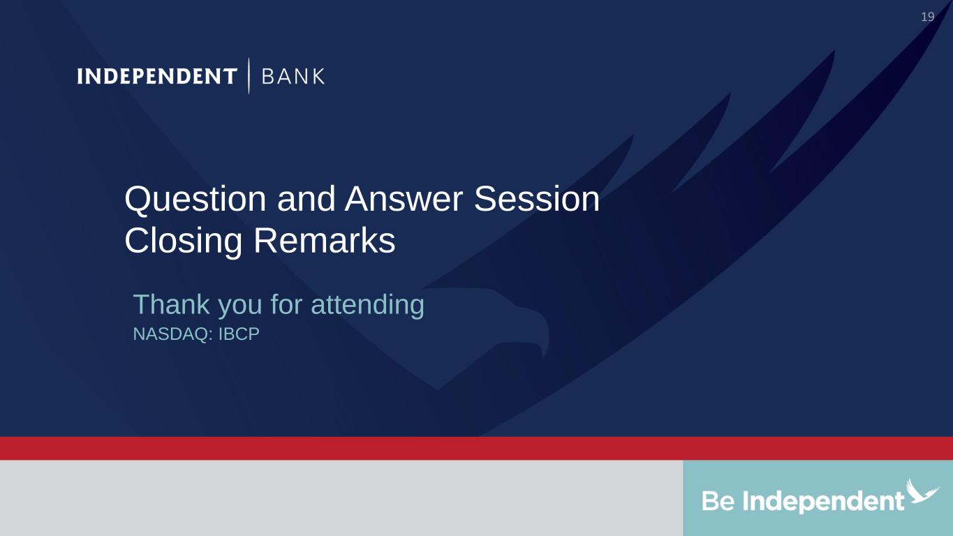 Question and Answer Session Closing Remarks NASDAQ: IBCP Thank you for attending 19