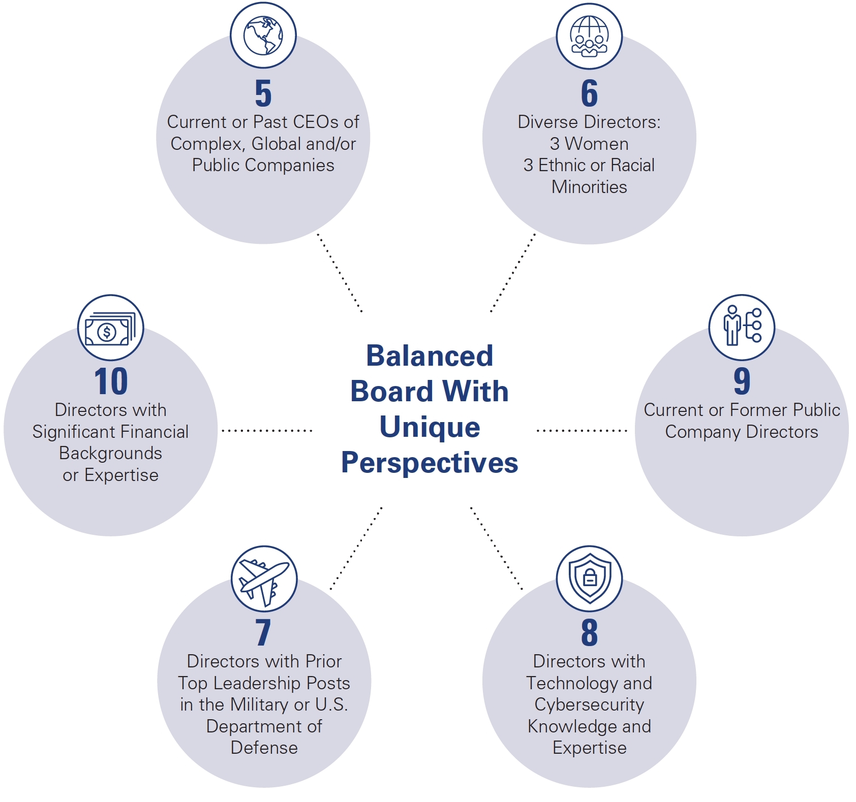 | As a result of our deliberate and thoughtful Board refreshment process, your Board comprises well-qualified business leaders, aerospace and defense industry experts, and financial and strategic advisors. Your Board of Directors draws on this deep professional experience, specialized knowledge and broad life perspectives in carrying out its important work of independent oversight. | ||