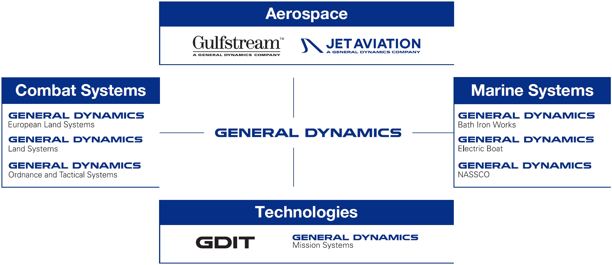 General Dynamics Corporation (NYSE: GD) is a global aerospace and defense company that specializes in high-end design, engineering and manufacturing to deliver state-of-the-art solutions to our customers. We offer a broad portfolio of products and services in business aviation; ship construction and repair; land combat vehicles, weapons systems and munitions; and technology products and services. We offer these products and services through our 10 business units, which are organized into four operating segments: Aerospace, Marine Systems, Combat Systems and Technologies.