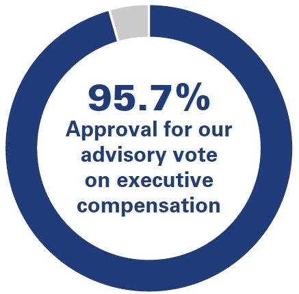 | In 2024, we also continued to engage in regular conversations with our investors to better understand shareholder perspective. During these conversations with investors, we discussed topics such as company performance, corporate governance, sustainability and executive compensation. We value this input from our shareholders and encourage you to continue to engage with us. | ||