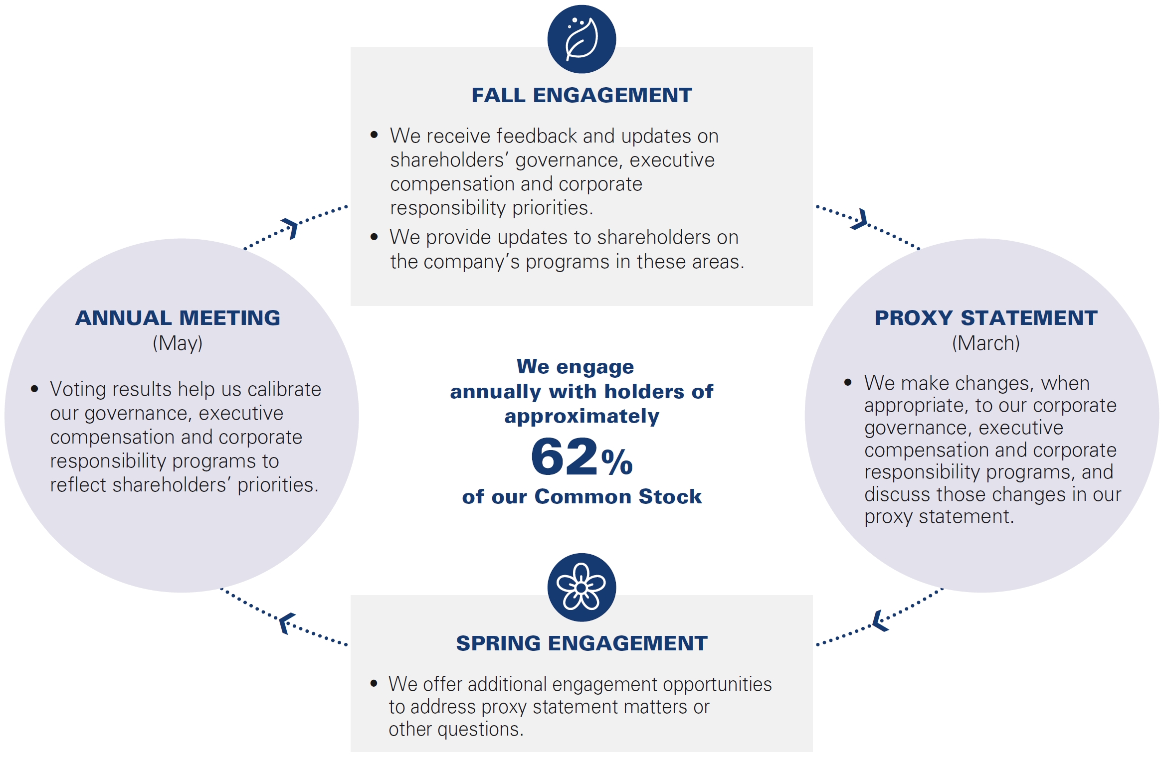 In 2025, we continued to engage with shareholders on topics of investor interest, including company performance, corporate governance and executive compensation. We find these conversations important and helpful as we work hard to create long-term enduring value for you.