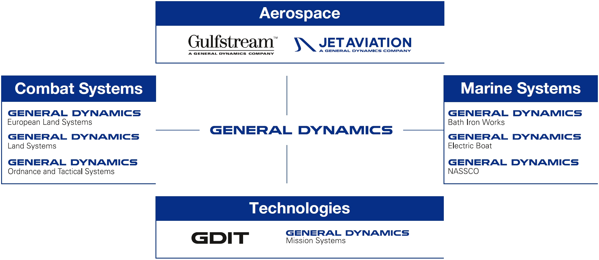 General Dynamics Corporation (NYSE: GD) is a global aerospace and defense company that specializes in high-end design, engineering and manufacturing to deliver state-of-the-art solutions to our customers. We offer a broad portfolio of products and services in business aviation; ship construction and repair; land combat vehicles, weapon systems and munitions; and technology products and services. We offer these products and services through our 10 business units, which are organized into four operating segments: Aerospace, Marine Systems, Combat Systems and Technologies.