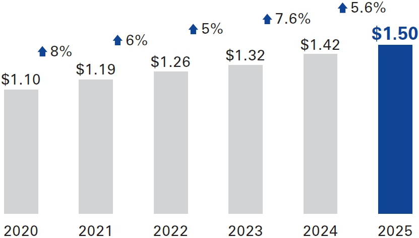 $1.50 per share QUARTERLY DIVIDEND 5.6 percent increase |