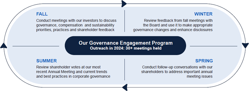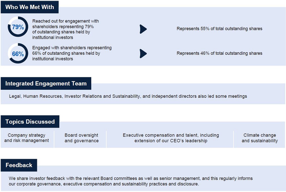 The Board firmly believes that securing Larry’s continued leadership was in the best interests of shareholders. I encourage you to read more about our deliberations in the Q&A with Steve Angel, the Chair of our Management Development & Compensation Committee, on page 27.